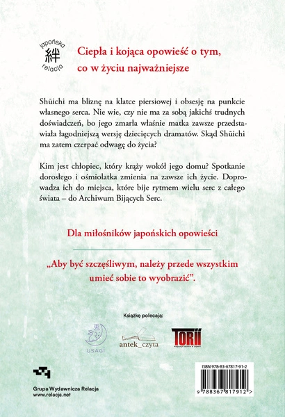 - „Archiwum Bijących Serc” to miejsce, które bije rytmem serca, wypowiadanym we wszystkich językach świata. Książka to opowieść o więzi, która powstaje po tragedii i smutku, opowieść o pięknie i sile ukrytych w niewinności bycia dzieckiem.