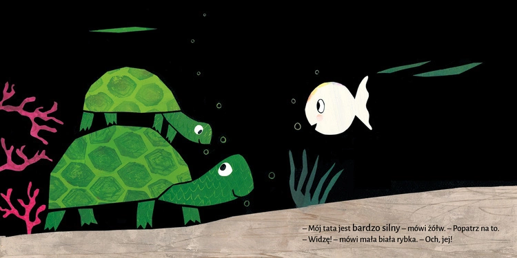 Przyjaciele małej białej rybki mają niesamowitych tatusiów: jeden jest bardzo silny, drugi największy ze wszystkich, trzeci bardzo mądry, a kolejny naprawdę zabawny! Oczywiście tata małej białej rybki też jest w czymś dobry!