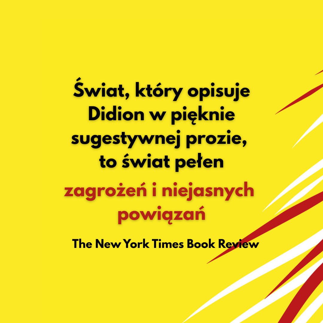 Świat, który opisuje Didion w pięknie sugestywnej prozie, to świat pełen zagrożeń i niejasnych powiązań.