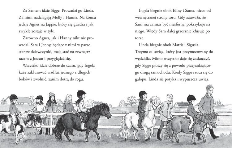 Drugi tom bestsellerowej serii. Sigge wrócił do szkółki „PSIKUS”, a Elina znów może spędzać z nim czas. Razem z koleżankami przygotowuje się do świąt – dekorują stajnię, ćwiczą paradę i szykują się do występu. Dla Eliny to także ogromne emocje i stres przed pierwszym publicznym pokazem. Czy wszystko pójdzie zgodnie z planem?