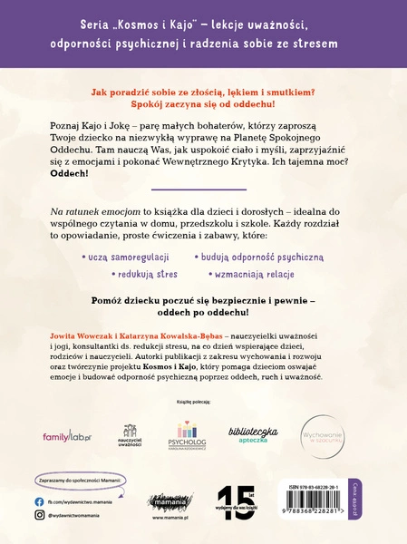 Kajo i Joka zapraszają na kosmiczną wyprawę na Planetę Spokojnego Oddechu. Będą się zmagać z Wewnętrznym Krytykiem i nauczą się, jak spokojny i uważny oddech wpływa na nasze ciało, umysł i emocje.