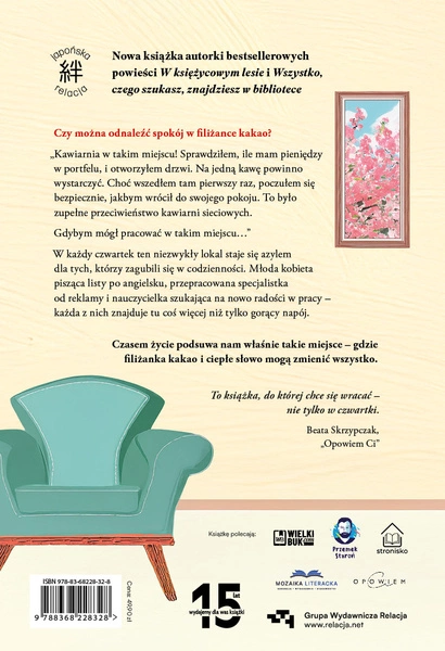 - W ukrytej tokijskiej kawiarni filiżanka gorącego kakao i ciepłe słowo mogą zmienić wszystko. To opowieść o drobnych chwilach, które leczą serce – napisana przez królową japońskich comfort books Michiko Aoyamę.