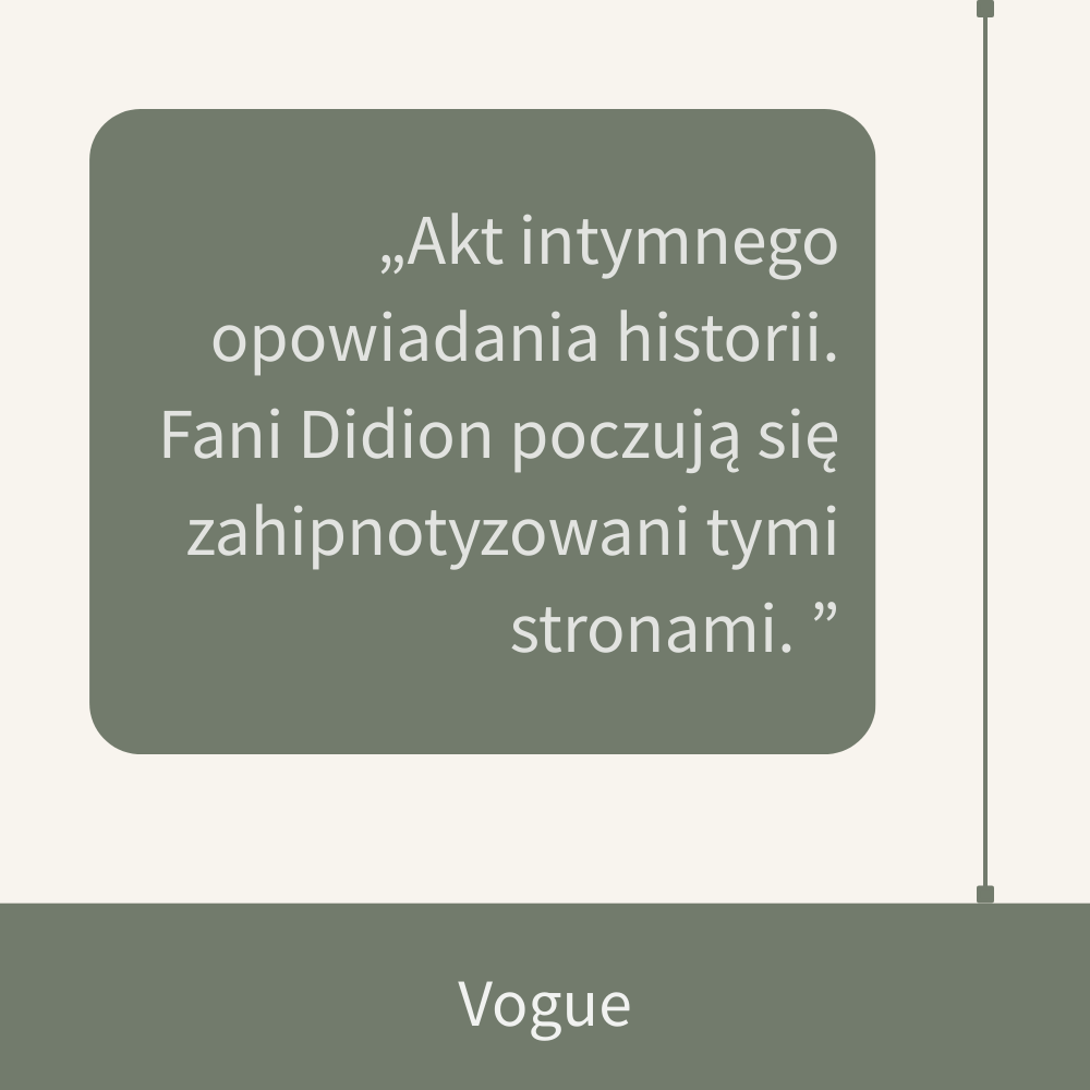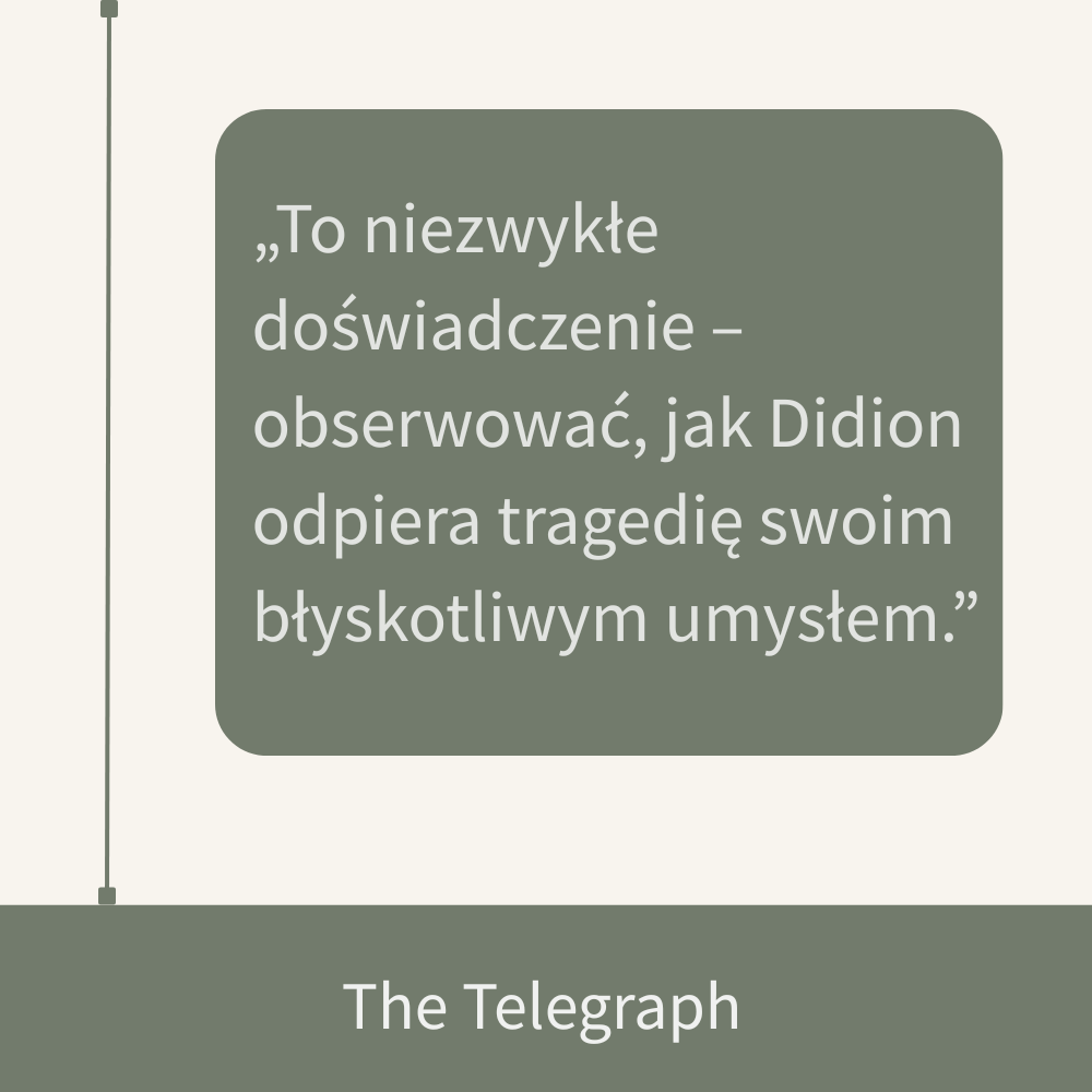 „Niepublikowane wcześniej notatki z sesji u psychiatry oferują niezwykle intymny wgląd w relację Didion z córką, depresję i twórczość."