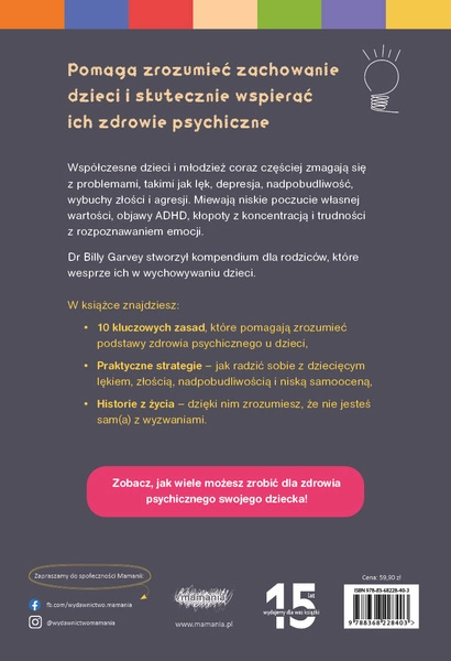 • Praktyczny i przystępny przewodnik dla rodziców, oparty na ponad 20 latach doświadczenia klinicznego. Pomaga zrozumieć zachowanie dzieci i skutecznie wspierać ich zdrowie psychiczne w każdym wieku.